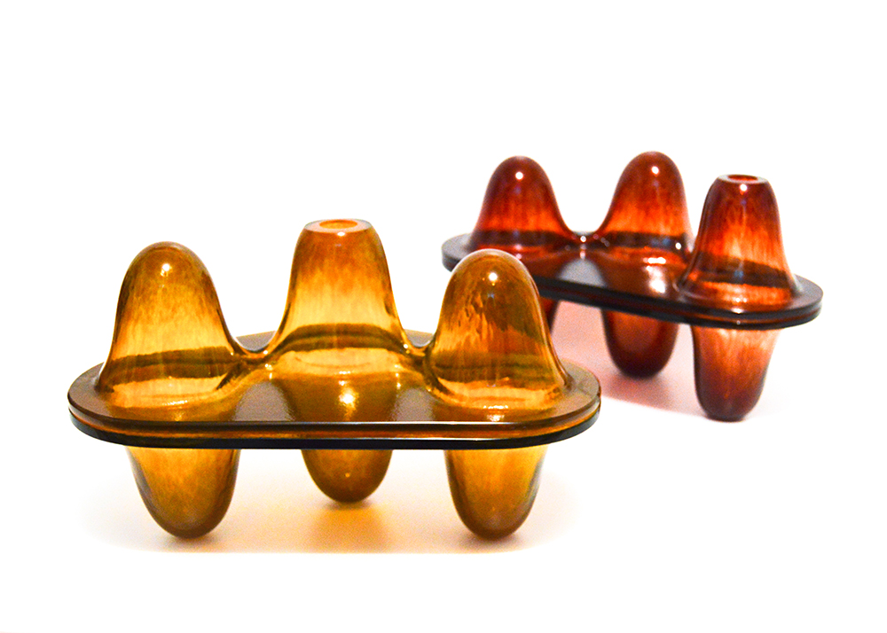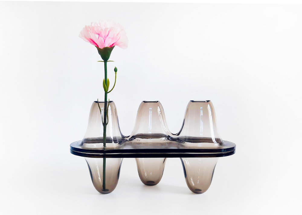 «Archipel en vue !» Les îles, nous les voyons, la mer les dédouble. La pièce Archipel est un triflore présenté en deux parties. Une partie «îles», au-dessus et une partie «reflet», au-dessous qui accueille l’eau pour hydrater les fleurs.
